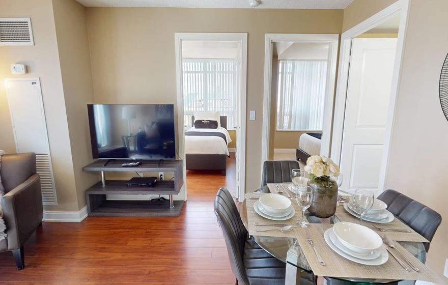 Ultra Ovation propose des locations à court terme haut de gamme à Mississauga, dans un milieu urbain dynamique. Situé en face de Celebration Square, ce condo moderne vous offre commerces, restaurants et divertissements à deux pas, un choix idéal pour le logement corporatif à Mississauga. Profitez d’installations de qualité supérieure incluant une piscine intérieure chauffée avec spa, des saunas en cèdre, du golf virtuel, un centre de conditionnement physique ultramoderne, une salle de yoga, des tables de billard et des salles de réception élégantes avec bar humide, parfaites pour le travail ou les loisirs. Ces appartements entièrement meublés